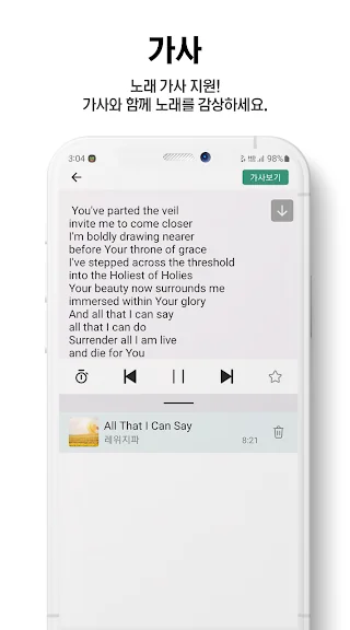 가사와 함께 복음성가 노래를 감상하세요.