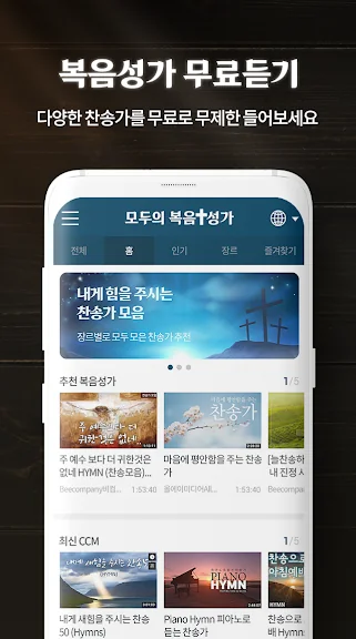 인기 복음성가, 찬송가 모음, CCM 찬양, 복음성가 경음악 등 다양한 노래를 한곳에서 쉽게 청취해 보세요.