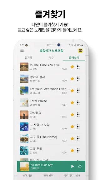 좋아하는 가수의 복음성가 노래를 쉽게 찾을 수 있습니다.