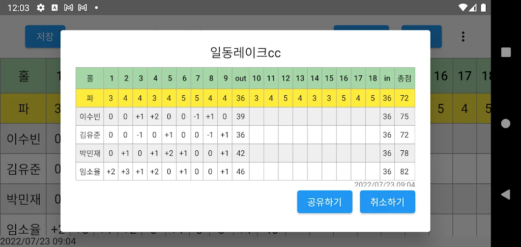2) 골프 스코어카드 어플 스크린샷