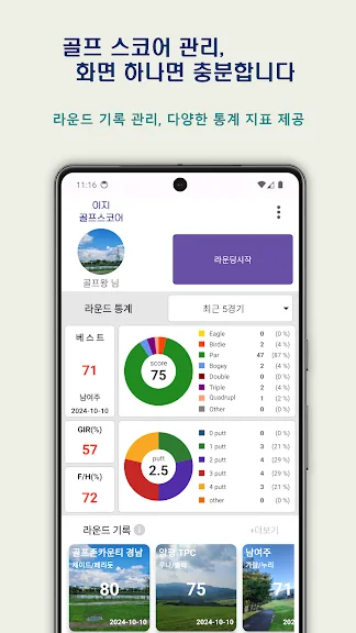 아래는 이지 골프 스코어카드 - 스코어, 통계, 골프 게임 어플에 대한 스크린샷 정보입니다.