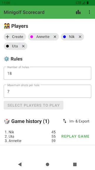 각 미니골프 점수는 기록에 저장됩니다. 미니 골프 점수 통계도 얻을 수 있습니다.