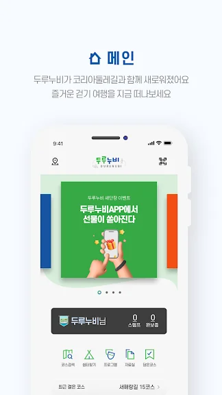 아래는 두루누비(코리아둘레길) 어플에 대한 스크린샷 정보입니다.