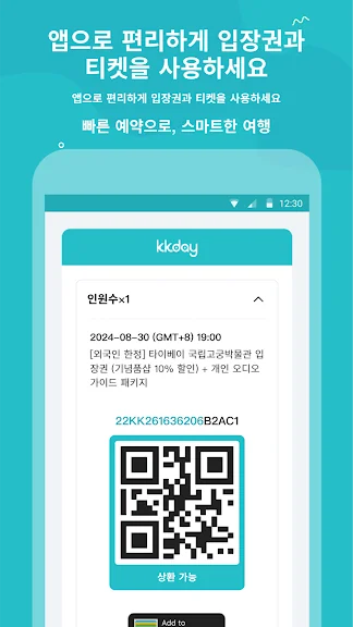 앱 전용 할인으로 혜택은 더하고, 장바구니에 담아 한 번에 결제해 번거로움은 줄여보세요. 게다가 여행지에서는 현장 대기 줄 없이 전자 바우처로 간편하게 사용이 가능하답니다.