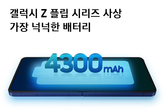 새로운 Z 플립7에는 향상된 CPU와 GPU가 탑재되어 있습니다. 전작 대비 CPU는 9%, GPU는 23%, NPU는 22% 성능이 개선되어 영상 편집이나 게임, AI 기능 구동 등 다양한 멀티태스킹을 더욱 빠르고 부드럽게 처리할 수 있습니다. 또한 mDNIe 기술과 최적화된 전력 분산 기술로 배터리 효율까지 향상되었으며, 4,300mAh 대용량 배터리는 동영상 기준 최대 31시간까지 연속 사용이 가능합니다.
