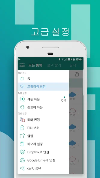 -프리미엄 구독은 추가 기능에만 액세스 할 수 있습니다. 통화 녹음 환경은 향상되지 않습니다. 프리미엄을 구독하기 전에 기본 버전이 어떤지 확인하십시오.