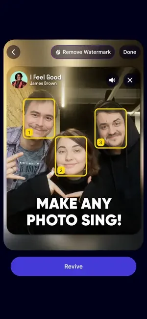 Revive는 어떤 사진이라도 애니메이션으로 만들 수 있고 사용법이 아주 간단한 AI 앱입니다. 편집하는 방법을 몰라도 되고 아무것도 배울 필요가 없습니다. 탭 한 번만 하면 사진이 노래하고 말하게 할 수 있습니다.