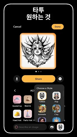 한 가지 스타일에 만족할 필요가 없습니다. AI 이미지 생성기를 통해 다양한 재미있고 트렌디한 예술 스타일을 탐험해보세요. 만화책 느낌부터 귀여운 클레이메이션, 세련된 일러스트레이션에서 생동감 있는 만화까지 - 앱을 통해 사진이나 아이디어를 원하는 예술 스타일로 변환할 수 있는 자유를 제공합니다. 탭 한 번으로 스타일을 쉽게 전환하고, 창작물이 새로운 생명을 얻는 것을 지켜보세요.