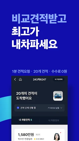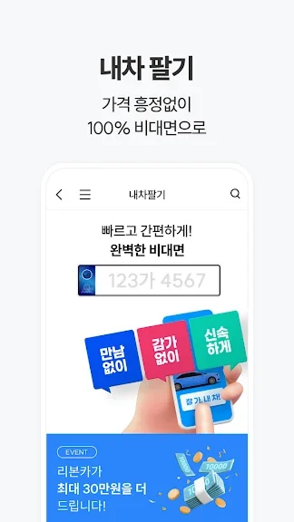 • 1분 안에 판매 신청 완료! 최고가 견적으로 쉽게 빠르게 내차팔기 완료