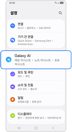 1단계) 설정에서 Galaxy AI 선택 후 통화 어시스트를 선택합니다.