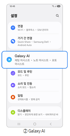 1단계) 설정에서 Galaxy AI로 진입합니다.
