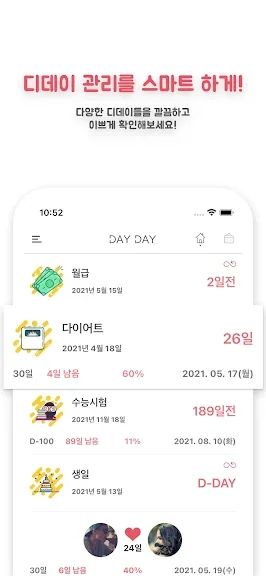 바쁜 일상 속, 소중한 날을 디데이로 등록하고