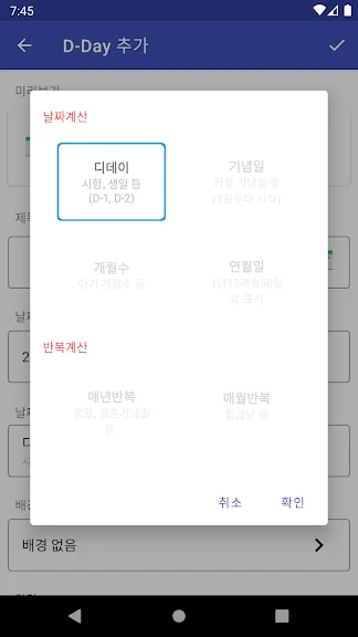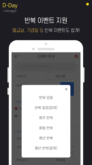 반복 디데이 날짜 계산: 생일, 월급등(x일, x주, x달, 매년, 음력 설정가능)