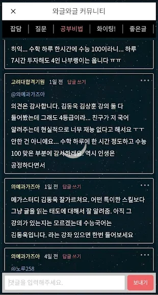 이 밖에 영어 시험이나 각종 시험들을 준비하고 있는 학생들끼리