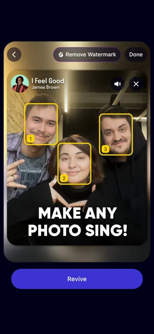 Revive는 어떤 사진이라도 애니메이션으로 만들 수 있고 사용법이 아주 간단한 AI 앱입니다. 편집하는 방법을 몰라도 되고 아무것도 배울 필요가 없습니다. 탭 한 번만 하면 사진이 노래하고 말하게 할 수 있습니다.